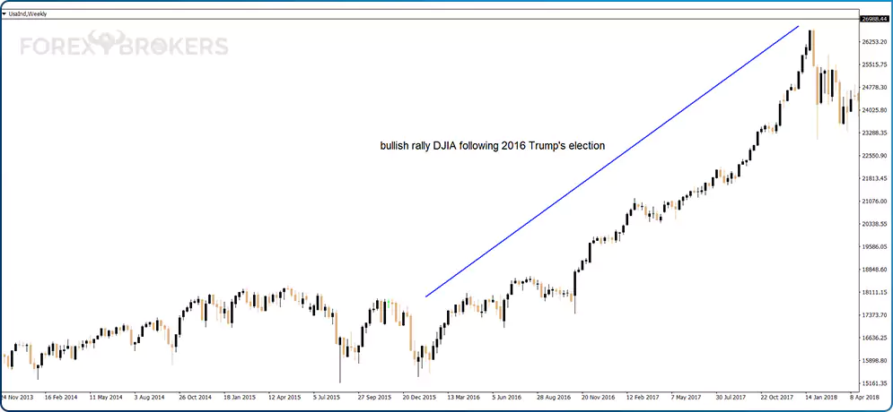 In 2016, two significant events affected the global markets: the Brexit referendum and the U.S. presidential elections. Trump’s election later in the year sparked a tremendous rally in one of the major equity indexes in the world, the DJIA.