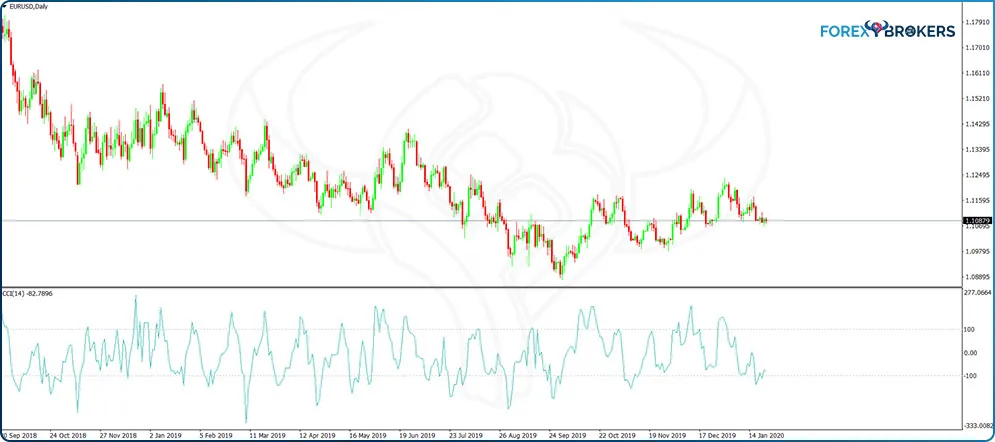 But the CCI was not built for the currency market initially, and the higher the market’s volatility, the easiest for the CCI to reach overbought and oversold levels. Unless it is a choppy market, like the recent EURUSD price action on the daily chart, the CCI stays overbought and oversold for long periods, not to mention that it exceeds the +100 or -100 levels easily.