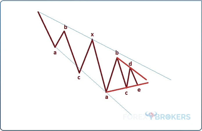 In other words, what seemed to be impulsive is nothing but corrective. The entire structure here respects the rules of a corrective wave that ends with a triangle. More exactly, this is called a double combination, a pattern we’ll cover later in the trading academy.
