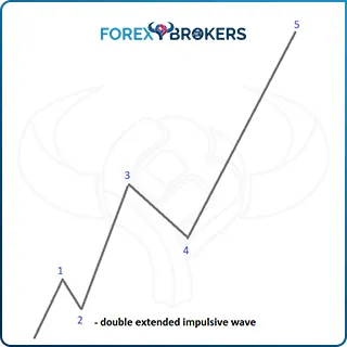 This is a double extended impulsive structure. Not only the third wave extends but also the fifth one. It easily exceeds 161.8% of the third wave and sometimes much more than that. In Addition, at the same time, it respects all the rules of an impulsive move mentioned so far in this part of the trading academy.